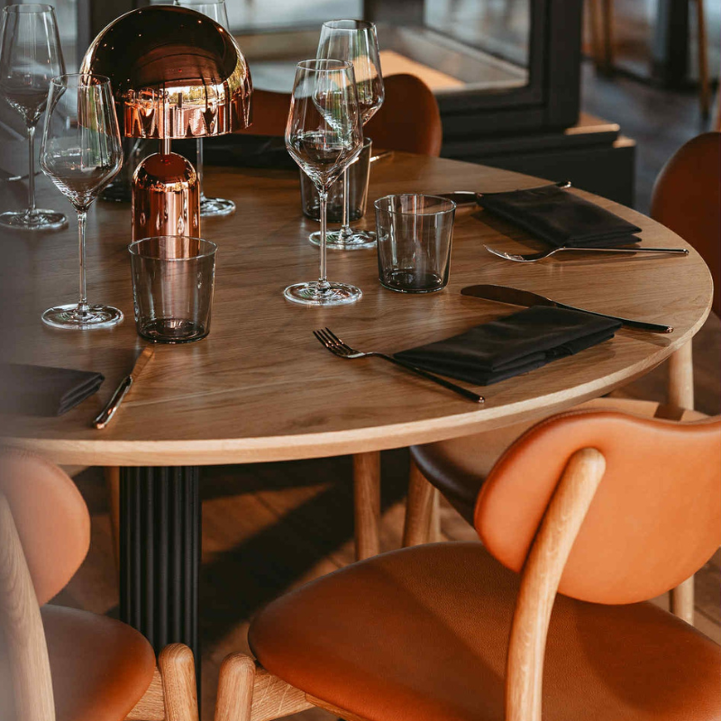Design er en del af oplevelsen hos TAR. Her er møblerne mere end blot funktion – de er en del af fortællingen. Regatta Chair inviterer til fordybelse og samtale, mens Hybrid Chair tilfører rytme og variation i rummet. Begge bidrager til restaurantens arkitektoniske struktur og tilføjer varme og ro.
