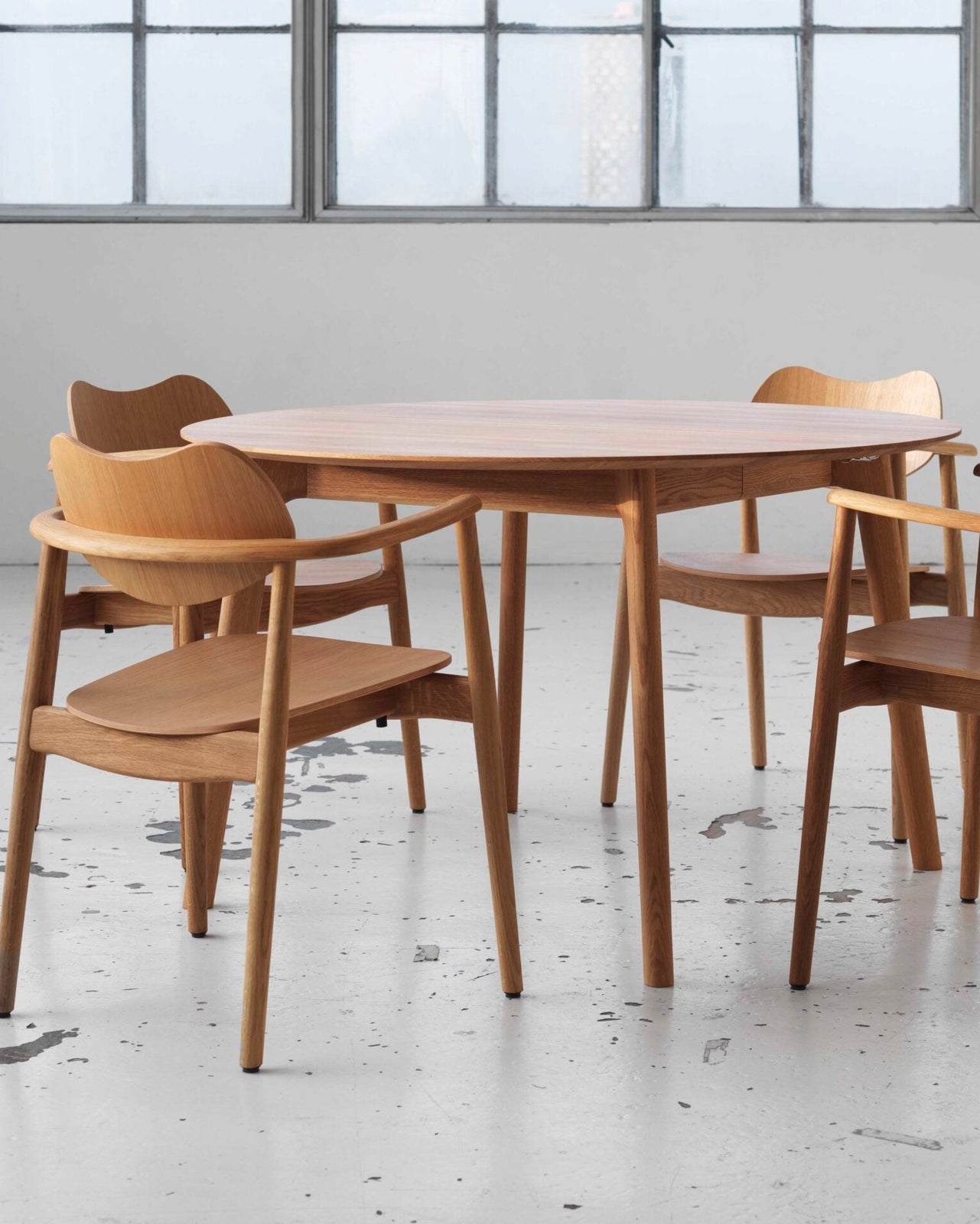 Forlæng gæstelisten med vores smukke Salon spisebord med udtræk - et rundt spisebord, hvor æstetik, fleksibilitet og håndværk går op i en højere enhed.