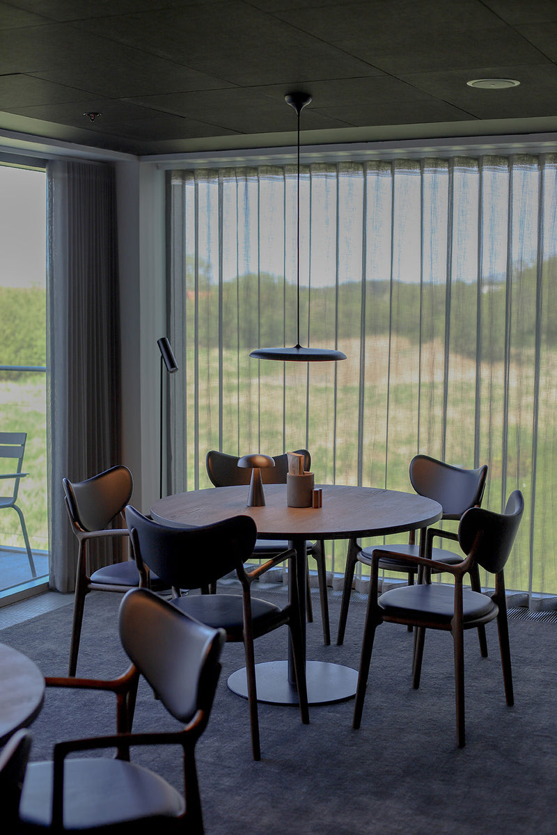 Scandic Opus Horsens offers a sophisticated and modern experience with its impressive 12-meter high atrium designed by Kim Utzon. The hotel's bright and stylish interior, combined with relaxation options such as a sauna and steam bath, create a luxurious atmosphere. This makes the hotel the perfect place for Ro Collection's exclusive furniture, which harmonizes beautifully with the elegant surroundings.
