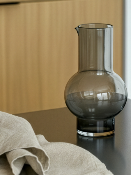 Pour refreshments from a bobble of mouth blown glass with Carafe no. 49. Flavour beverages or let wine oxygenate in the spacious, spherical centre of the sculptural Carafe no. 49, a stylish decanter in a smoky grey colour.