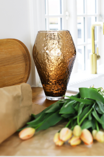 Crushed Glass Vase is crafted in Poland by skilled glass blowers with passion for their craft.