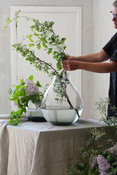 With its tall and wide shape, Flower Vase no. 24 is the perfect vase for the grand, long-stemmed flower bouquets. As the largest and heaviest of the series, the Flower Vase no. 24 can adorn every space as both a table vase and floor vase, as its teardrop silhouette is stabilised by a thick and flat base veiled in colour.