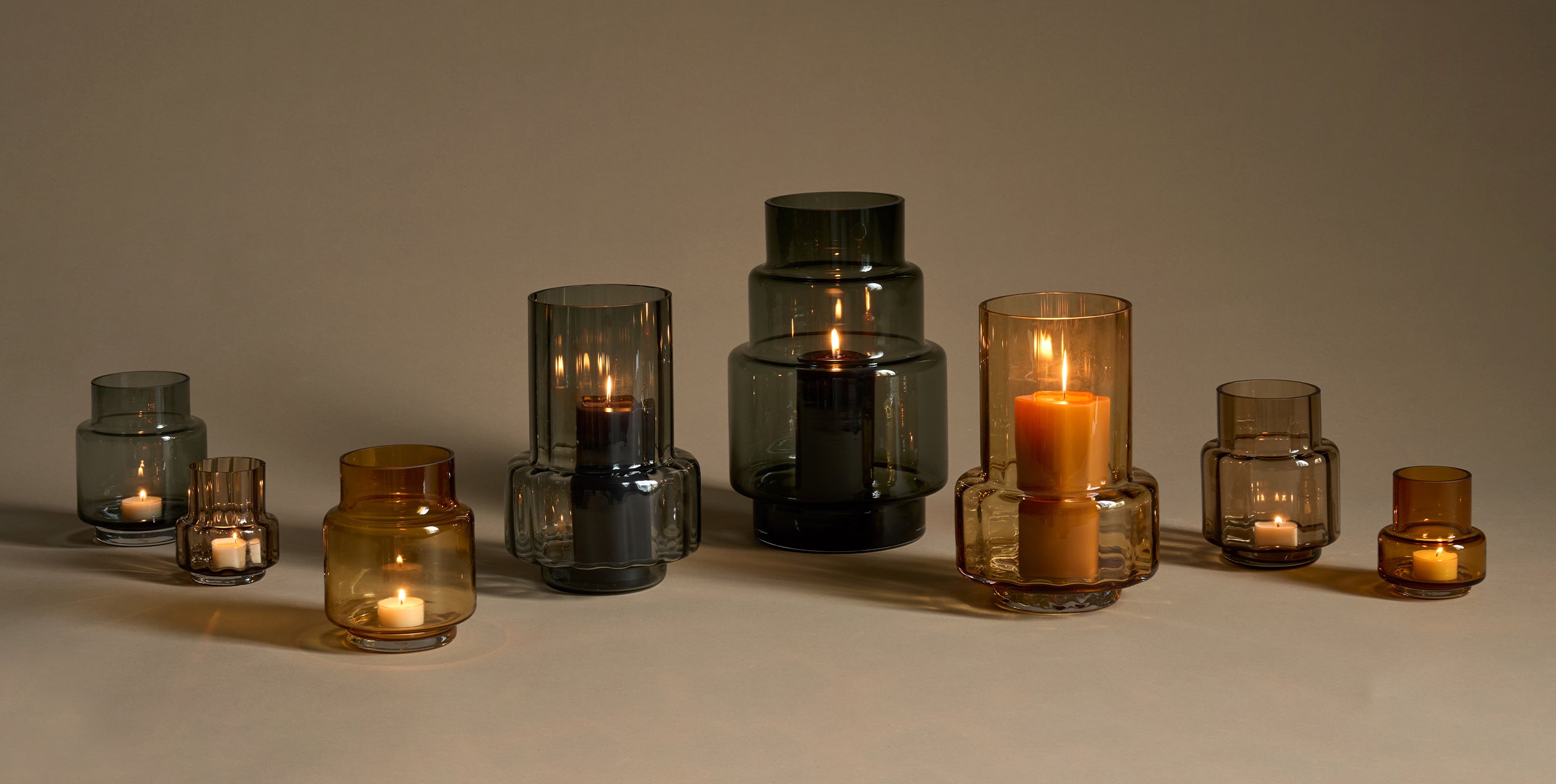 The Hurricane collection is created with inspiration from antique kerosene lamps which tall glass cylinder protects the flame from its surroundings and spreads the light of the lamp. Crafted in mouth blown glass, the Hurricane is a unique candle holder for the cosiest evenings out on the terrasse or at the dining table. Fill the Hurricane with water and create an eye-catching vase for the most beautiful flower bouquets.