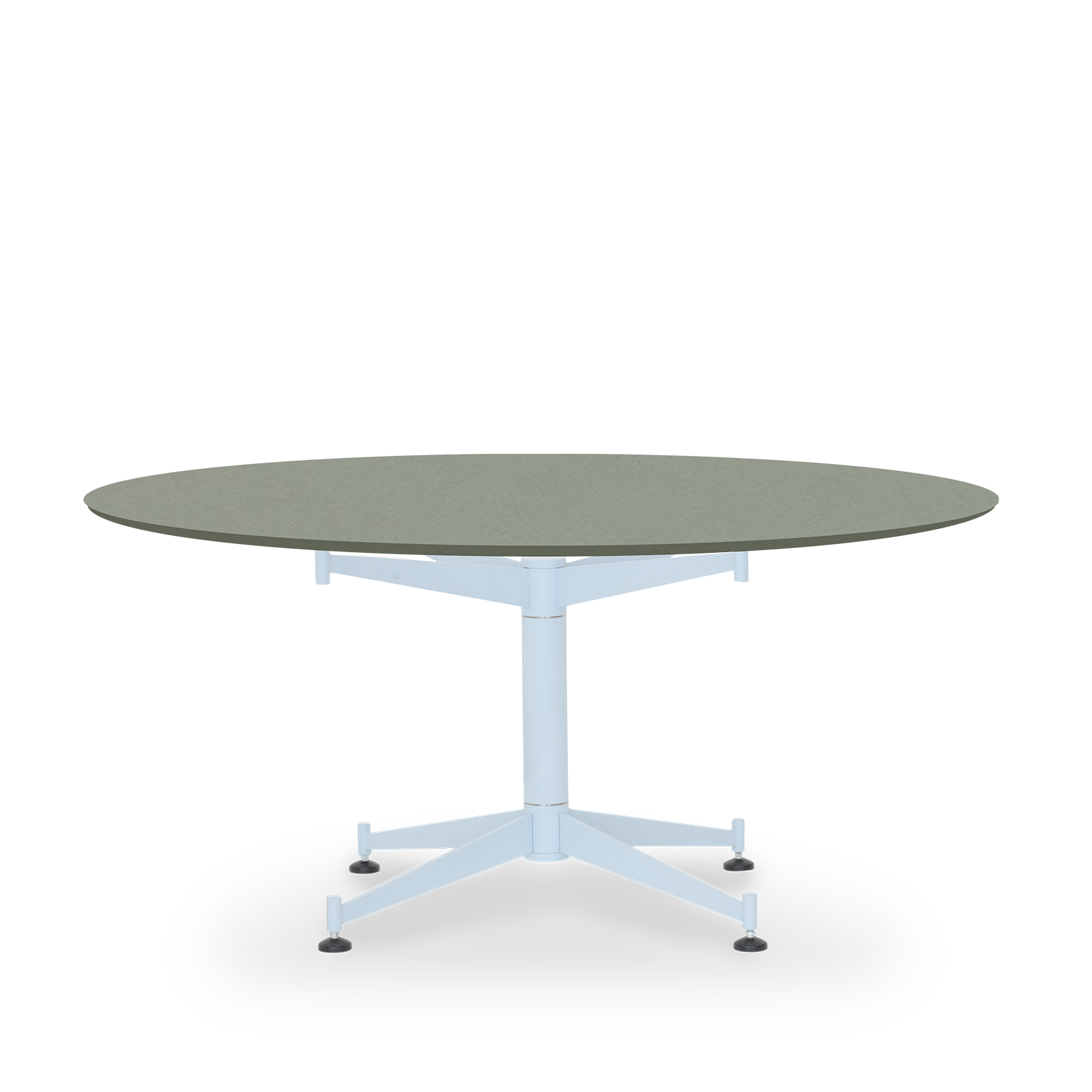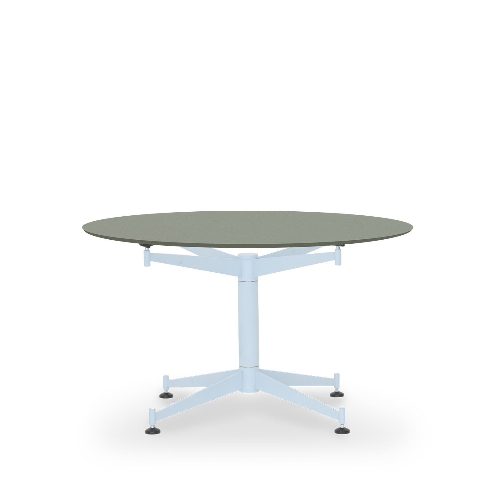 The functional, four-pointed frame rests upon adjustable feet that can easily be raised or lowered for height differing chairs or the uneven floor.