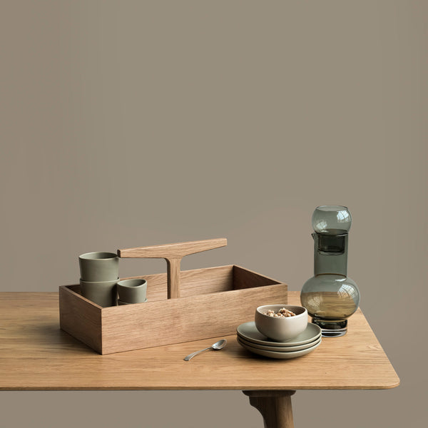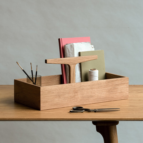 Crafted by skilled artisans in a small workshop, the Toolbox series re-assembles effortless functionality and minimalistic aesthetics in FSC-certified oak wood. With finger-tapped joints, the Toolbox is a stunning storage box for every room of the home.