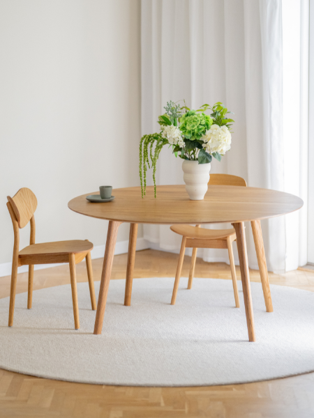 Forlæng gæstelisten med vores Salon bord, et rundt spisebord med udtræk. Et yderst smukt og fleksibelt højkvalitetsbord. Bragt til live i massivt egetræ, fremstår det runde Salon spisebord med udtræk som et pragteksemplar i dansk design og håndværk.